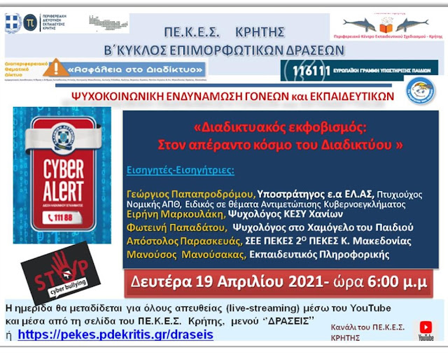 Η εκδήλωση θα προβάλλεται, σε ζωντανή μετάδοση (live-streaming), από το κανάλι του ΠΕ.Κ.Ε.Σ.Κρήτης στο YouTube, στη διεύθυνση.https://youtu.be/7uQSC0DJoYI